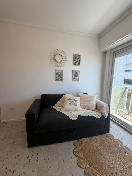 Living comedor amplio con salida a balcón corrido y una impactante vista abierta a la Plaza y al mar. Equipado con gran placard y calefactor con tiro balanceado.