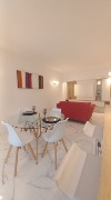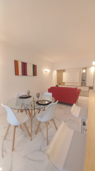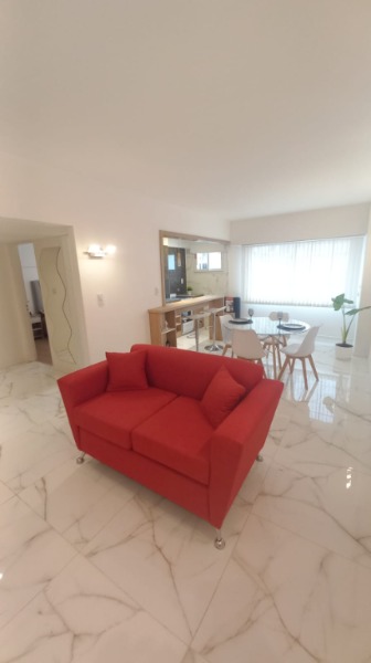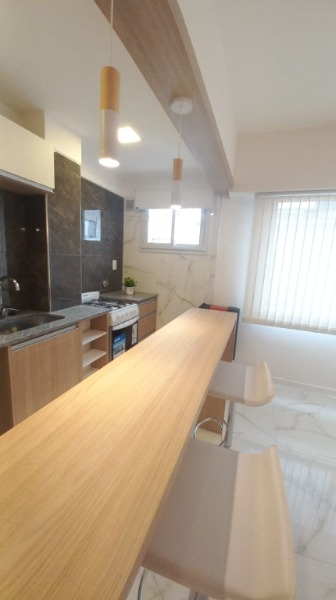 Living–comedor totalmente amoblado, con TV y toma USB para carga de dispositivos, calefacción y mobiliario incluido.