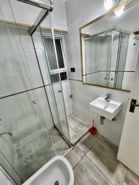 Baño completo, con mampara y espacio para lavarropas.