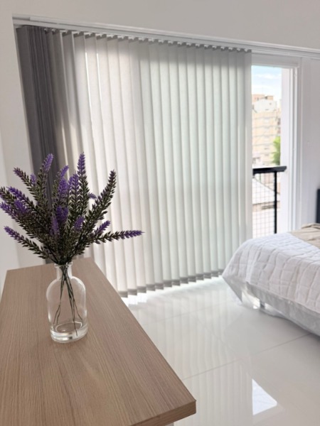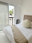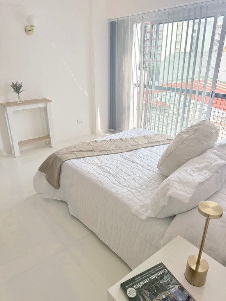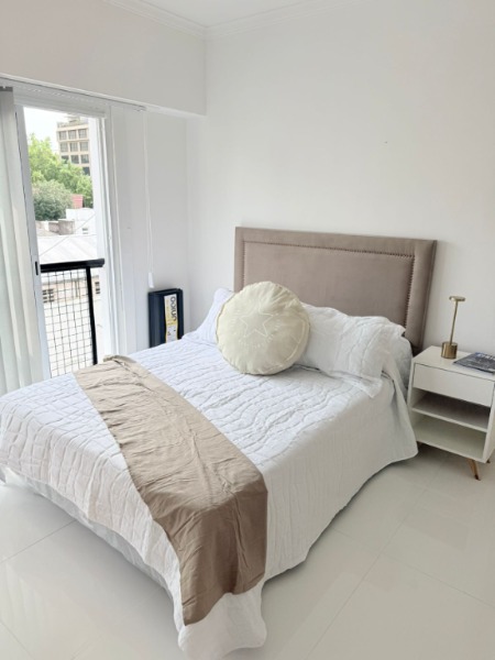 – Dormitorio con ventanal al contrafrente, con vistas a la piscina y quincho del edificio.