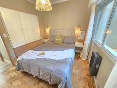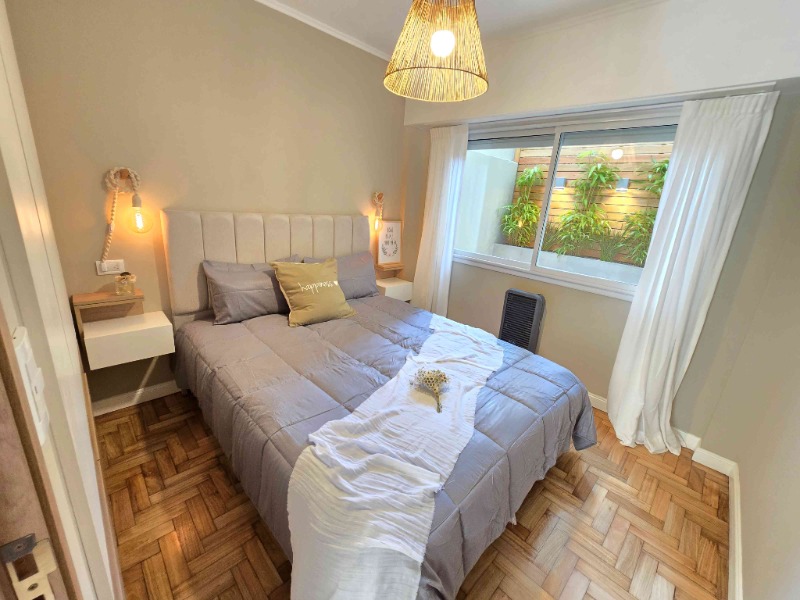 – Dormitorio con ventanal al contrafrente, con vistas a la piscina y quincho del edificio.