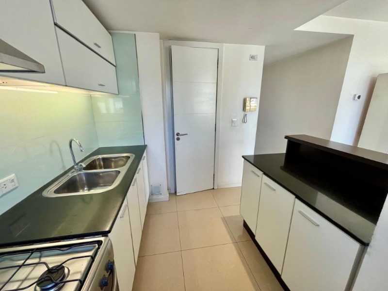 Cocina integrada con barra desayunadora, cómoda y con ventilación natural.
