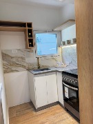 Ambiente cómodo y luminoso, con pisos y revestimientos en porcelanato.