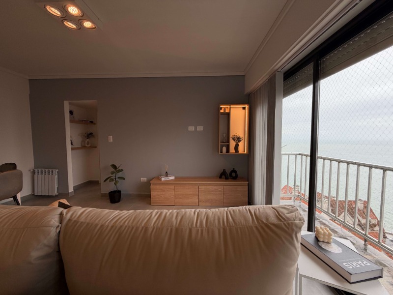 Amplio living comedor a la calle, muy luminoso, con salida al balcón terraza y vista lateral tanto a la plaza como al mar.