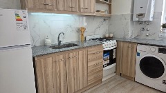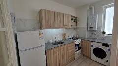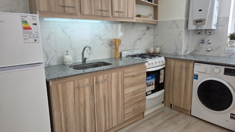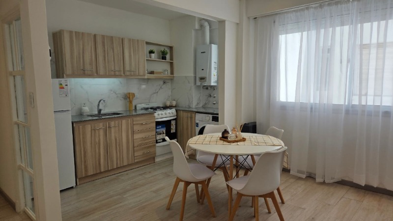 Cocina integrada al living, reciclada a nuevo, con ventilación natural y lavarropas.
