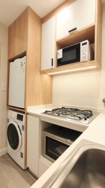 Cocina separada, totalmente amoblada, con artefactos de calidad y lavadero incorporado.