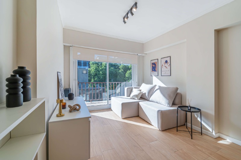 Living comedor amplio con salida directa a un gran balcón a la calle, ideal para disfrutar del aire libre y la vista urbana.