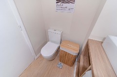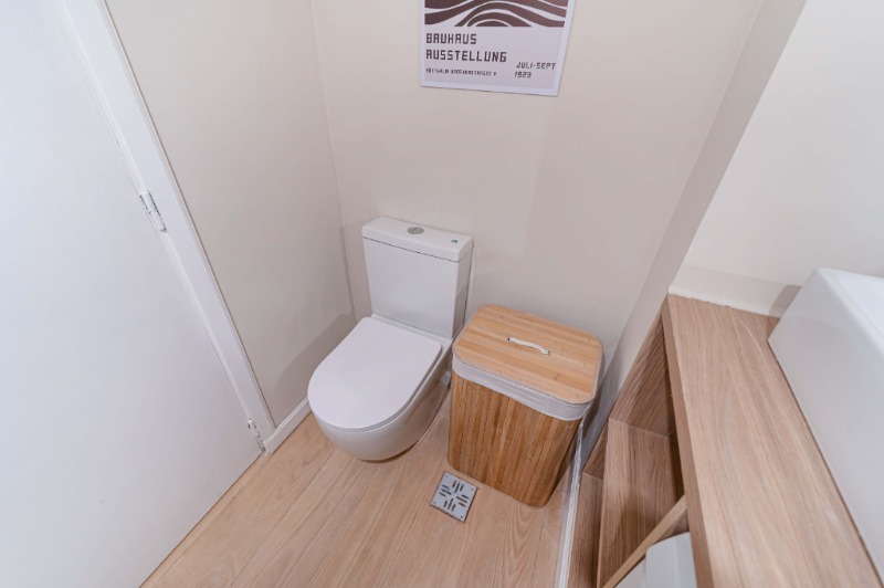 Toilette de recepción, equipado con lavarropas.