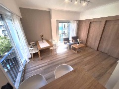 Amplio living comedor a la calle, muy luminoso, con salida al balcón terraza y vista lateral tanto a la plaza como al mar.