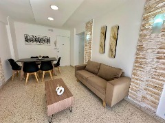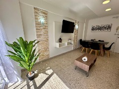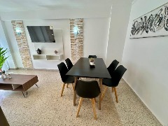 Living comedor con balcón francés, muy luminoso, con vista lateral al mar y a la Plaza Colón. Equipado con TV.