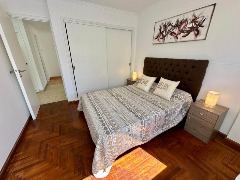 Dormitorio principal con placard y vista lateral al mar y a Plaza Colón. También cuenta con TV.