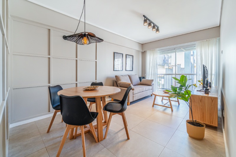 Amplio living comedor al frente, totalmente amoblado, con TV de 40” y toma USB para carga de celulares.