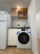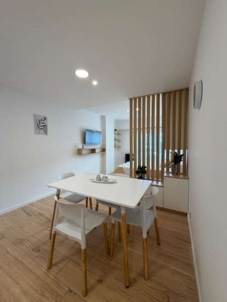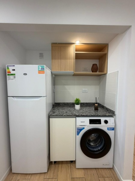 Living–comedor totalmente amoblado, con TV y toma USB para carga de dispositivos, calefacción y mobiliario incluido.