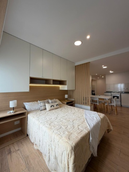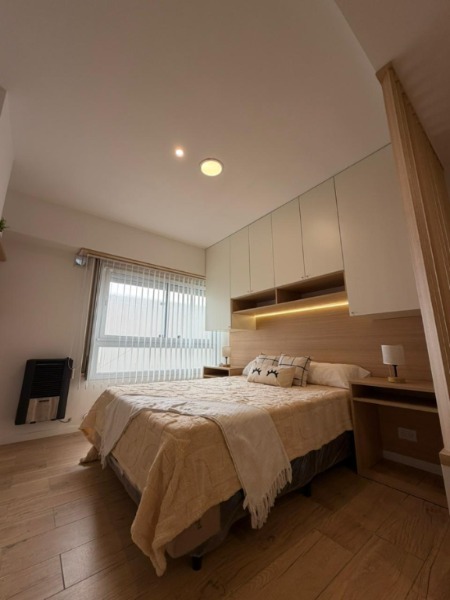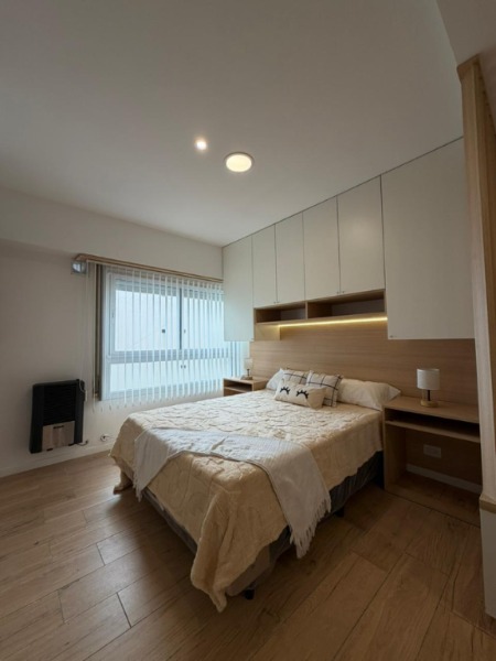Dormitorio al frente, con piso de parquet, placard con luz LED interior y calefacción.