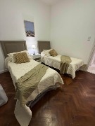 Habitación con dos Sommier de una plaza, respaldos, mesa de luz y placard con interior nuevo. Salida a patio mediante puerta balcón. Cortinas Hunter Douglas