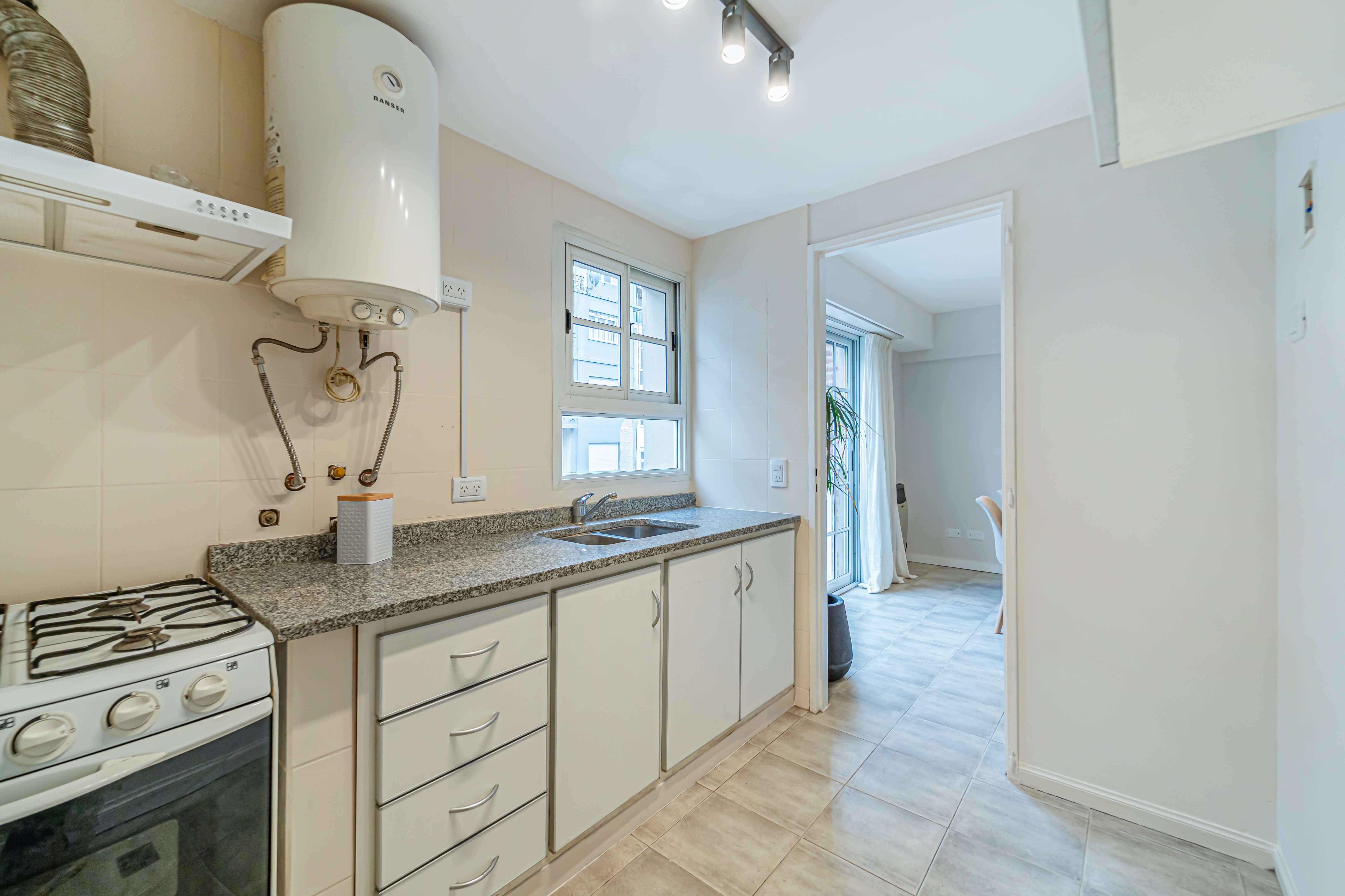 Cocina separada con ventilación natural y lavadero independiente.