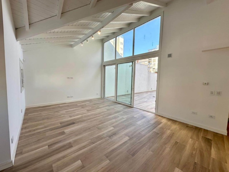 Al ingresar nos recibe un amplio living comedor de generosas dimensiones, con múltiples ventanas a la calle, gran ventanal con salida al patio y una impactante ventana en doble altura que aporta luz natural y jerarquía al ambiente. Techos blancos de madera a la vitsa.