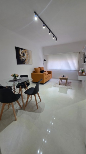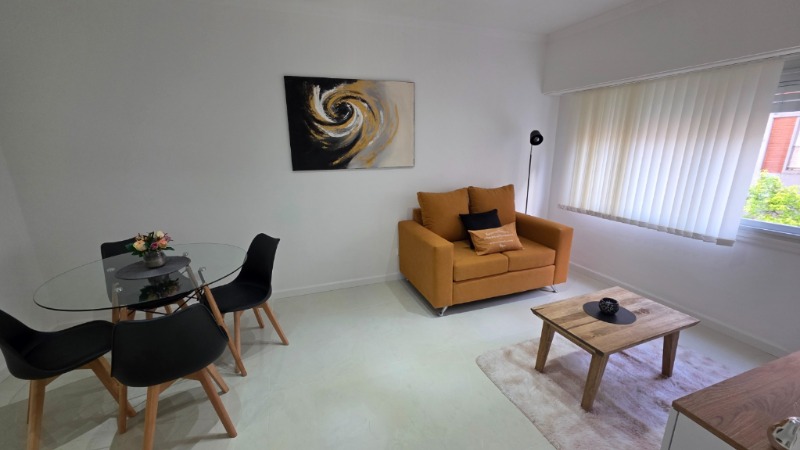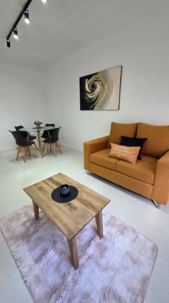 Living comedor al frente, completamente amoblado y decorado, con TV incluida.