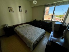Segundo dormitorio al lateral (3 x 2,6 m) con salida al balcón terraza, split frío/calor y baño en suite revestido en porcelanato (1,6 x 1,3 m).