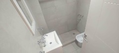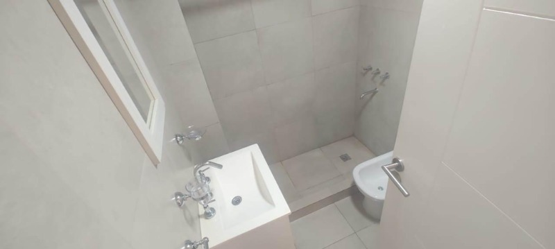 Baño completo, íntegramente revestido en cerámicos, con vanitory, ducha y extractor de aire.