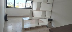 Mueble divisor de ambiente en melamina blanca, nuevo y realizado a medida.
