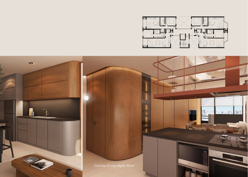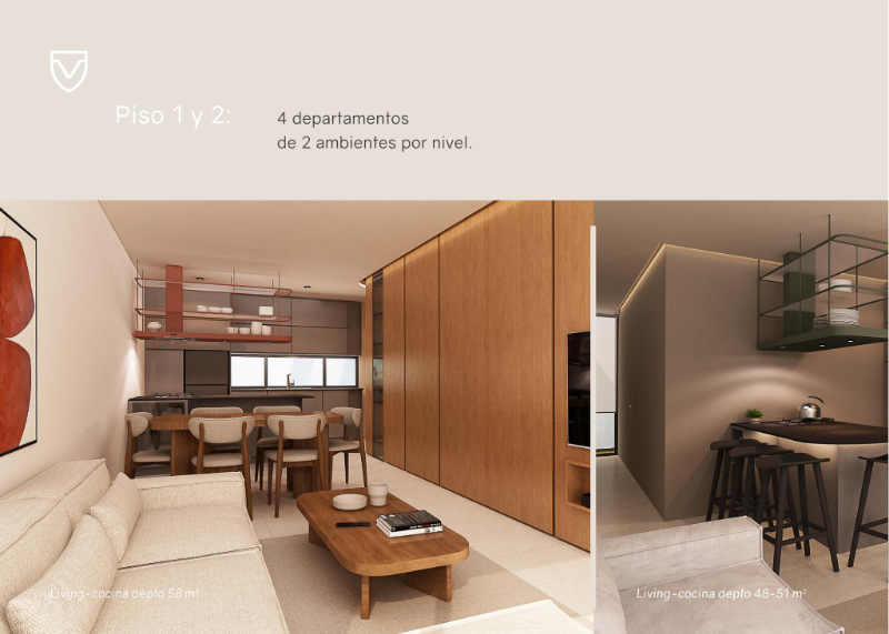 Unidades de 2 y 3 ambientes en un proyecto moderno, funcional y de diseño contemporáneo, desarrollado por el estudio Carmona Pérez Mariño Arquitectura.
