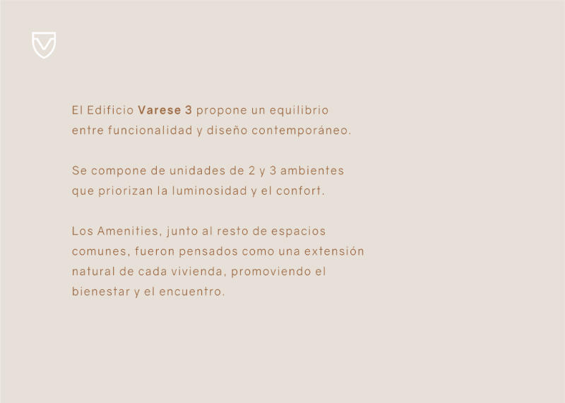 VARESE 3 se destaca por su estética atemporal, materiales nobles y espacios pensados para maximizar la luminosidad y el confort.